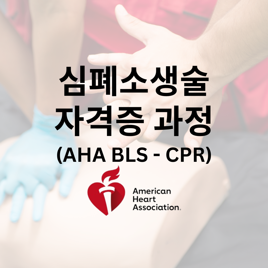BLS(Basic Life Support, 기본 소생술)는 심정지나 호흡정지 등 생명을 위협하는 응급상황에서 가슴압박(CPR), 인공호흡, 자동심장충격기(AED)의 신속한 사용법을 교육하는 과정입니다. 이 과정은 AHA(미국심장협회, American Heart Association)에서 인증하며, 의료기관 종사자 및 간호조무사(CNA) 과정 수강자에게 필수입니다.