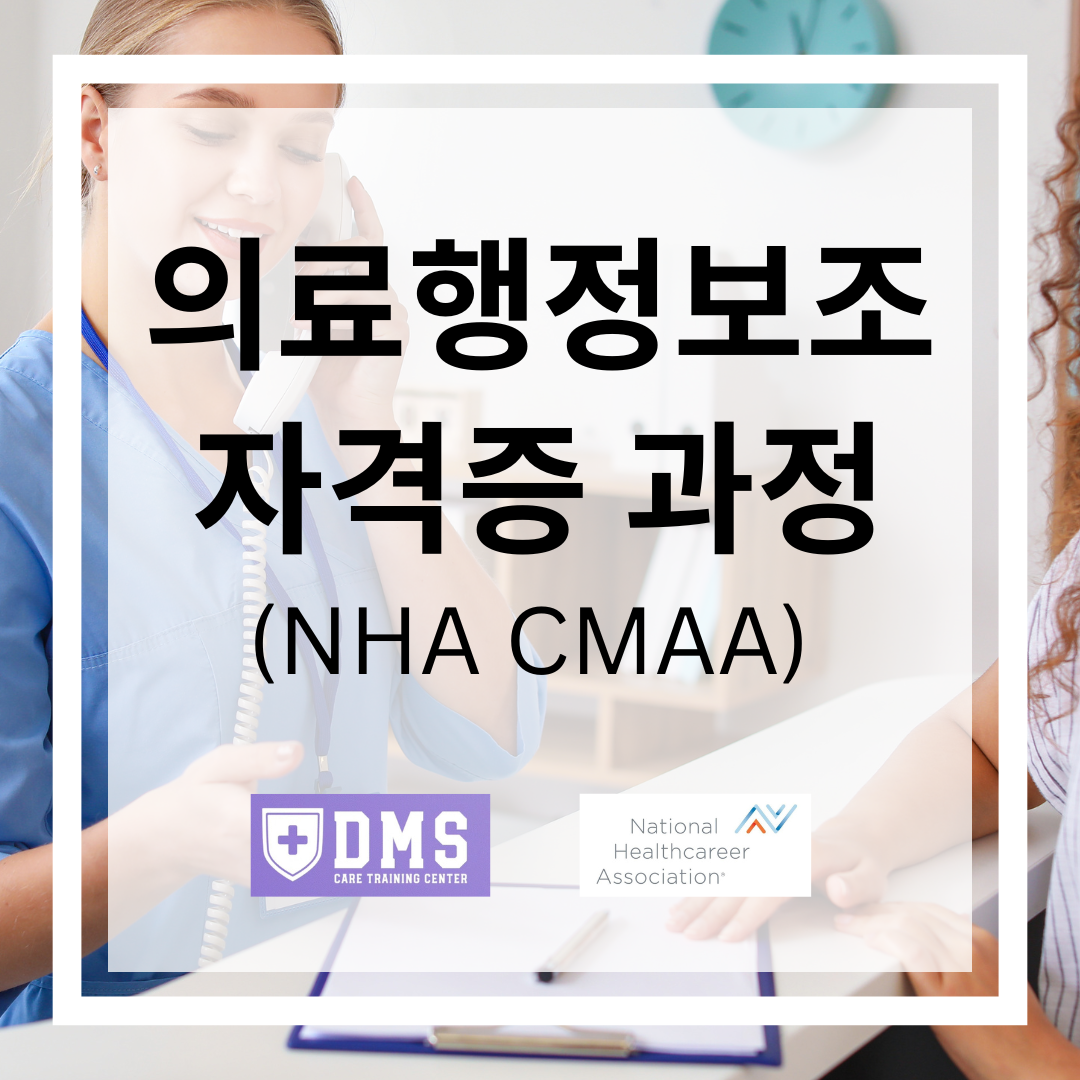 - 과정 완료 후 NHA의 CMAA (Certified Medical Administrative Assistant), NHA CBCS (Certified Billing and Coding Specialist, 의료청구 & 코딩 전문가) & NHA CEHR (Certified Electronic Health Record 의료 전산업무 전문가) 시험 응시 자격 부여